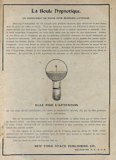 La herramienta para hipnotizar a los pacientes era "la boule hypnotique", la bola hipnótica ( que nunca encontré). Se pueden ver dos fotografías trucadas evidentemente para engañar al público. En una hay varios hipnotizados pescando en un balde y en la otra posan pisando un dormido cuatro personajes. Tiene una mancha debajo media rara.